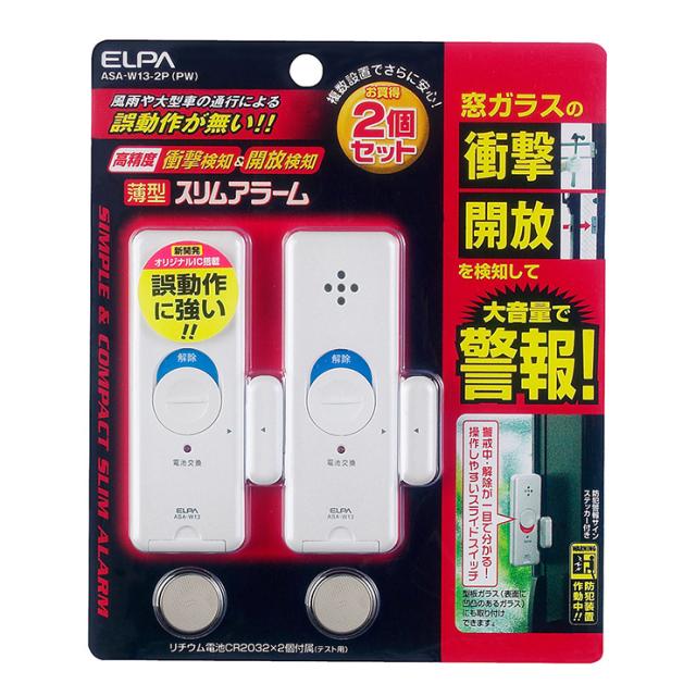 朝日電器 ELPA エルパ 薄型ウインドウアラーム 衝撃&開放検知 パールホワイト 2個入 ASA-W13-2P(PW)【送料無料】