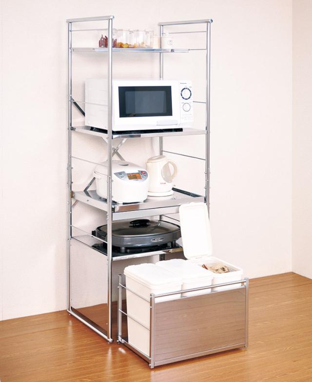 【日本製】 1585 ステンレス大型レンジラック-ハイ 3分別ペール キッチン収納 ラック レンジラック カウンター収納(代引不可)【送料無料】