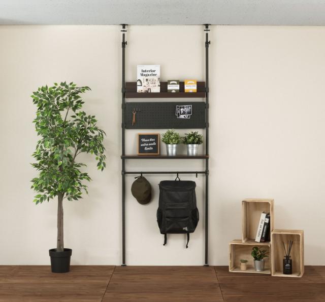 ルミナスノワール 壁面収納 突っ張りラック 80W 幅85cm ポール径25mm パンチングボード付き 突っ張りテンションラック 突っ張り(代引不可