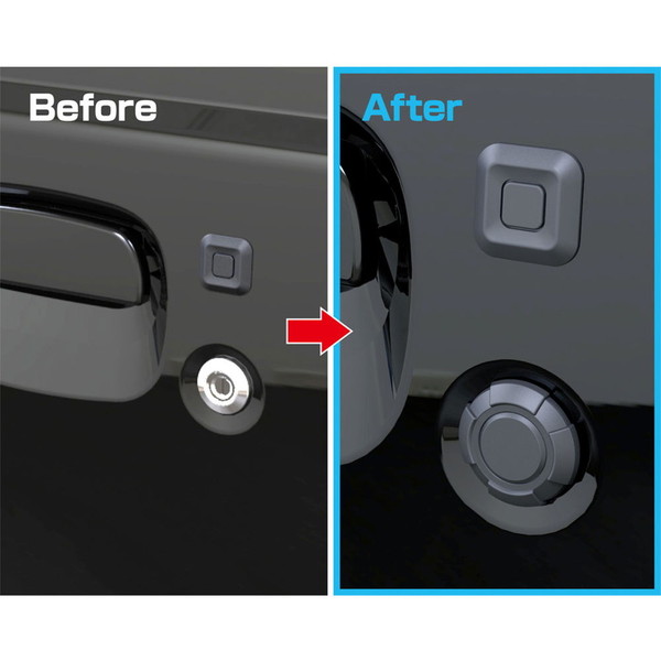 ●Jimny・Jimny SIERRAの、キーホールに取付けるだけで、クロームメッキの純正キーホールをタフネスデザインにドレスアップするカバーです。