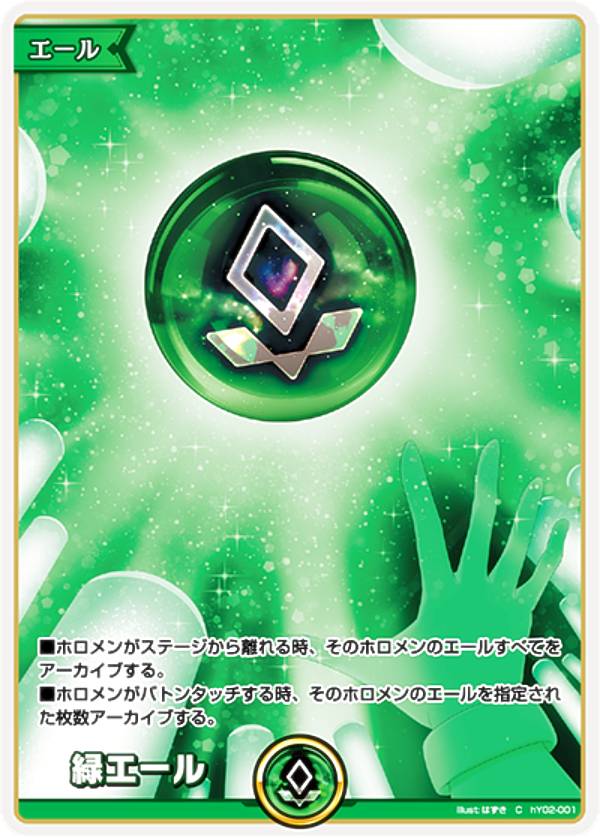 ホロライブオフィシャルカードゲーム hY02-001 緑エール (C コモン) (ホロライブOCG)