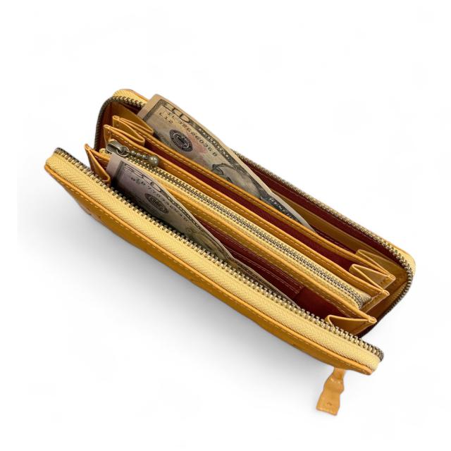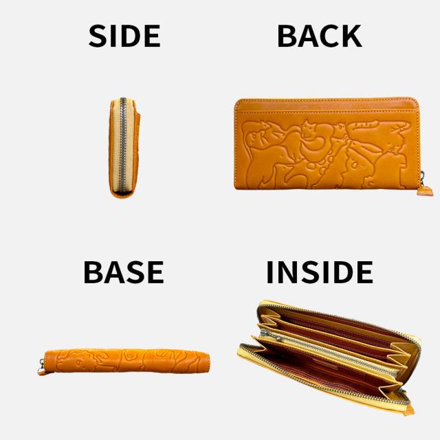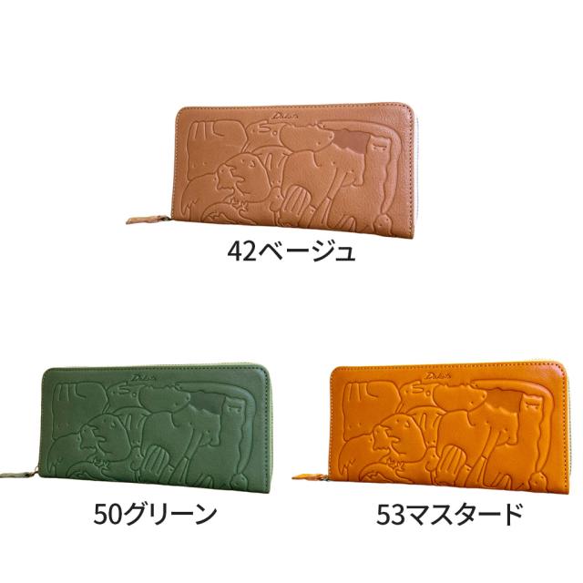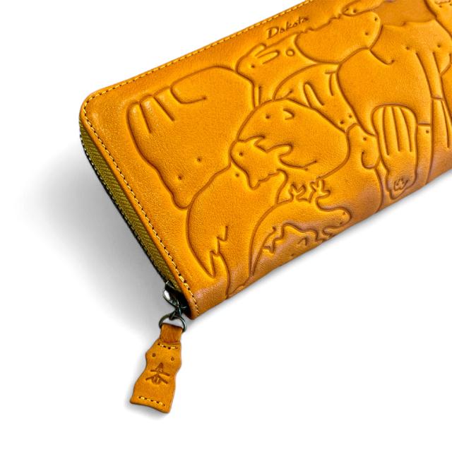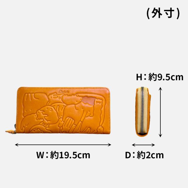 様々な動物がギュッと詰まった動物パズル柄を型押しした遊び心溢れる小物シリーズ。 POINT 01 大容量ながらすっきりとしたフォルムの ラウンドファスナータイプの長財布。