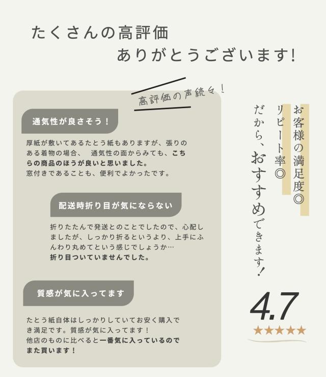 - 古くなって劣化していたたとう祇をお得に一気に替える事が出来て良かったです 注文して翌日に届けていただけて良かったです