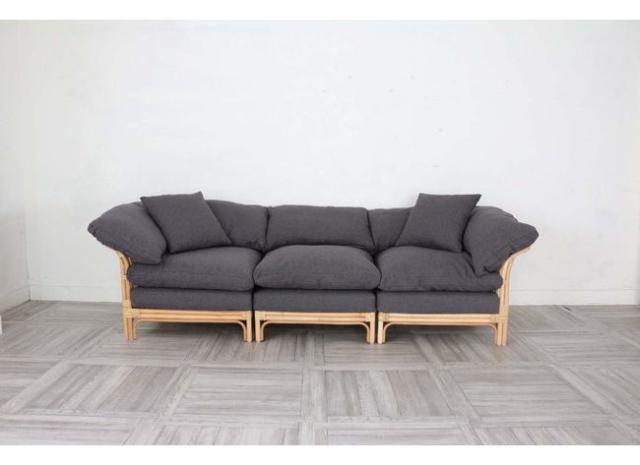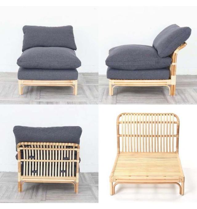 ソファ ソファー ブラック カウチソファ 1人掛 一人掛け 1P 脚付 籐 ラタン クッション センター セット 組み合わせ レイアウト(代引不可