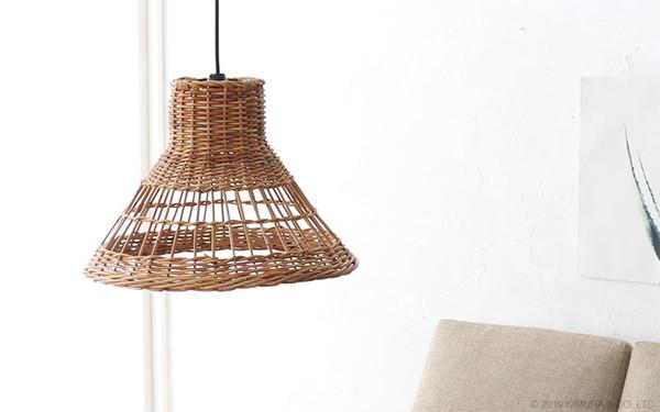 ラタン製で、透け感があるデザインのランプシェード。