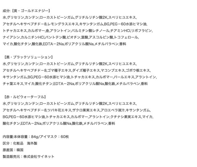 内容量:本体容量:84g/アイマスク:60枚