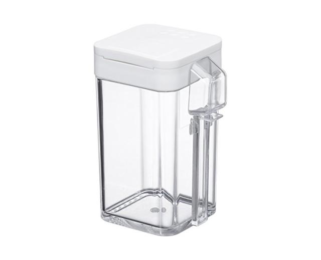 ●「小麦粉&スパイスボトル アクア ホワイト」は、さらさらタイプの小麦粉やスパイスなどを簡単にふり掛けられて、小さじスプーンは容器に収納できます。