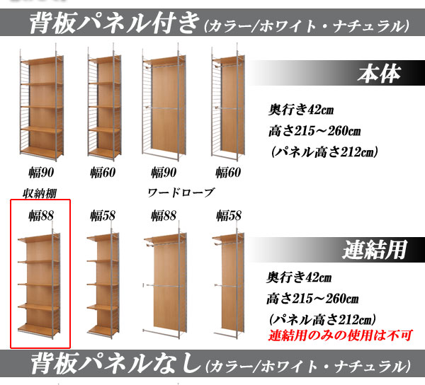 日本製 突っ張り 壁面 間仕切り ラック 幅88 連結用 パネル付きタイプ ホワイト つっぱり 収納 壁面収納 オープンラック 国産 背板付き 白(代引不可)【送料無料】