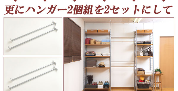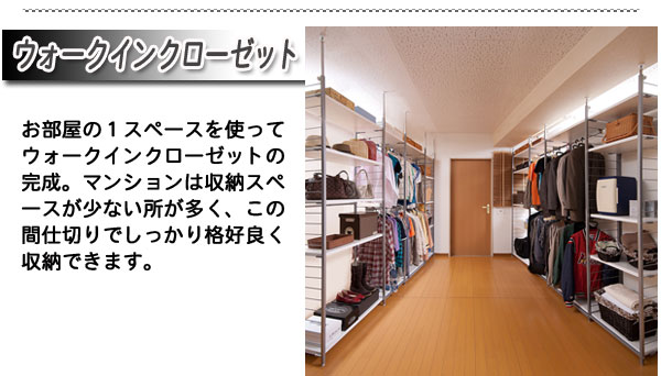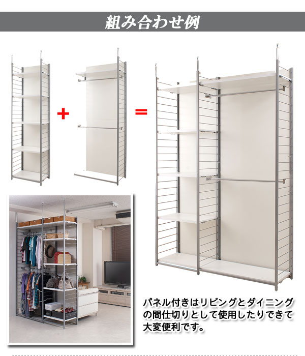 ■お部屋にメリハリをつける間仕切りシリーズは、アレンジ次第でオリジナル空間に変身!たっぷり収納できるラックと、ハンガーが付いた服吊で色んなパターンが完成。