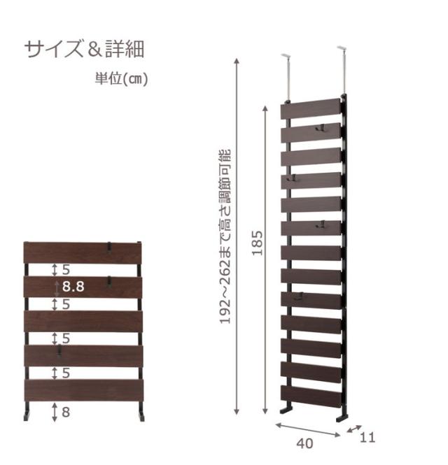 ■商品サイズ/本体:(約)幅40×奥行9(脚部11)×高さ192〜262cm、ラダー間隔:(約)ラダー高さ8.8・すきま5cm、目隠し部高さ:(約)185cm
