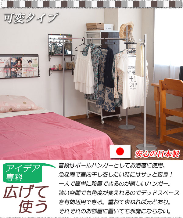 日本製 室内 物干し 兼用 ハンガー ワイド ポールハンガー 可変式 ホワイト 白 コートハンガー ハンガーラック 収納(代引不可)【送料無料】