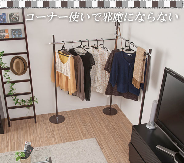 ポールを左右に広げることができ、シングルとは違い、ポールを180度回転させることができます!部屋の隅に置くとき、角の形に合わせて設置できるので省スペースで済むので、ひとり暮らしでも場所をとりません。