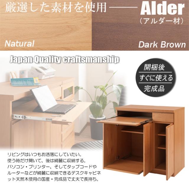 完成品 日本製 天然木 アルダー材 パソコンデスク 幅90 キャビネット デスクになる 木製 カウンター リビング おしゃれ ブラウン 国産(代引不可)【送料無料】