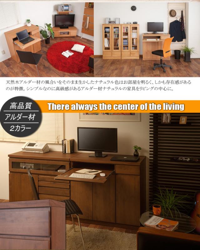 ■商品について/上質で木目の美しい人気の天然木アルダー材使用のテレビボードシリーズにPC台兼用リビングキャビネットが新登場!シンプルだけどしっかりと存在感があり、お部屋の中に溶け込みます。