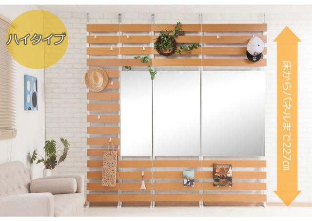 ミラータイプを壁面いっぱいに並べればリゾートホテルのような感覚に。