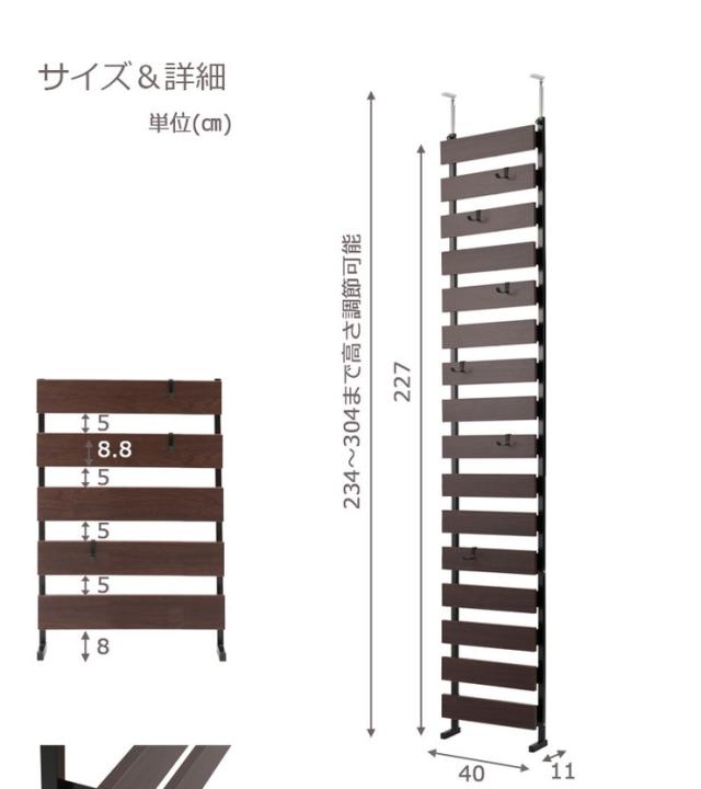 ■商品サイズ/本体:(約)幅40×奥行9(脚部11)×高さ234〜304cm、ラダー間隔:(約)ラダー高さ8.8・すきま5cm