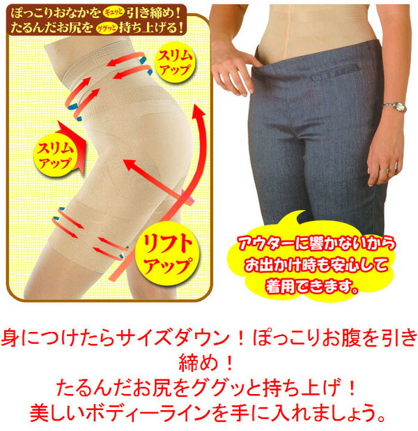 。部位ごとに適した圧力や工夫をなした手の込んだつくり、丁寧な縫製に期待が高まります。そして、たぷたぷな肉襦袢をキッチリしまうかのようにはいてみるとメリハリが出来てる!そうです、ウエストにはキュッとくびれが。さらにポッコリ下っ腹はぺったんこに、だらしなく垂れ下がったピーマン尻も上向きに♪もちろん、ペタッと密着してた太ももにも隙間が誕生!