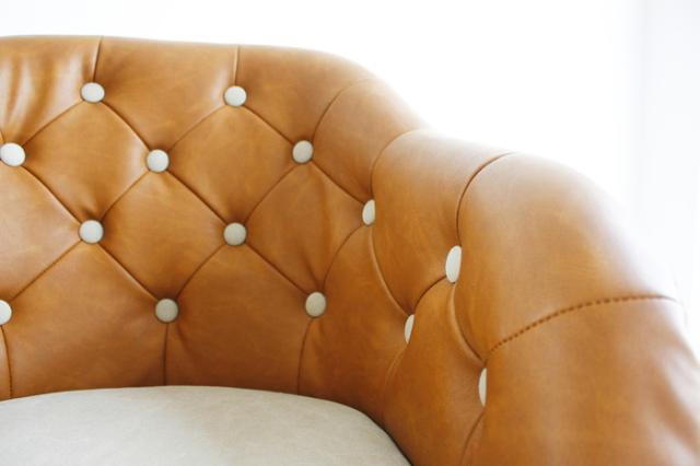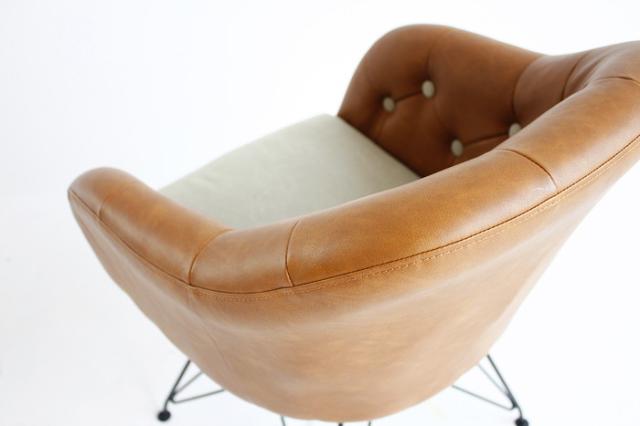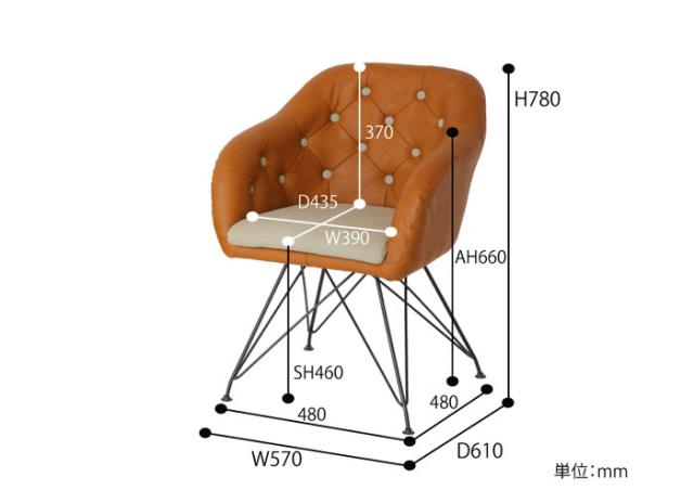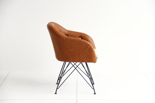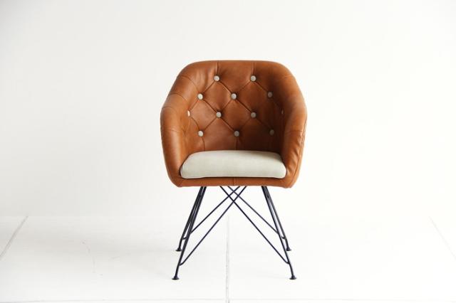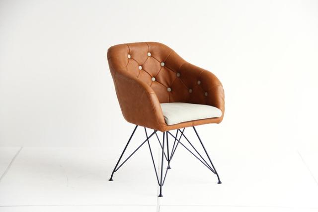 椅子 革 スチール 丸ボタン キャメル ダイニングチェア ブラウン オフィスチェア モダン チェア いす お洒落 北欧(代引不可)【送料無料】