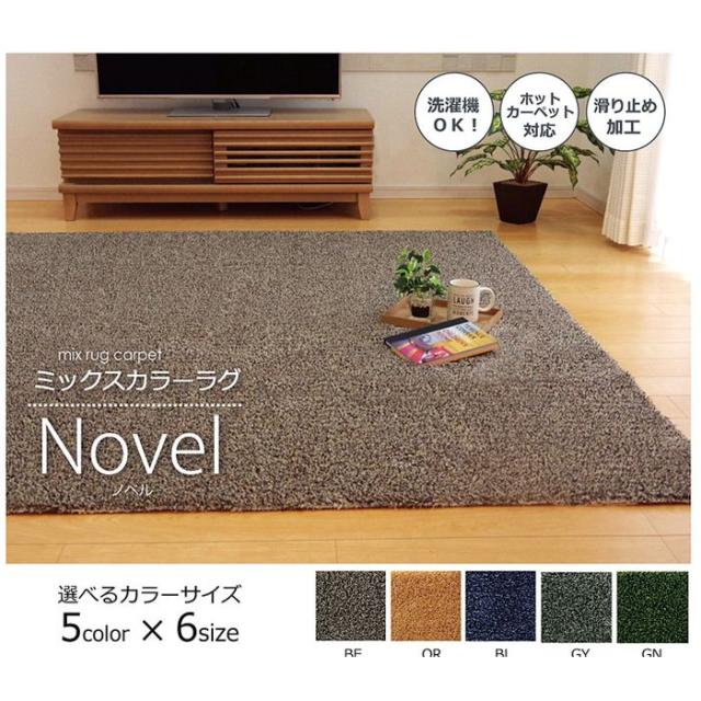 ラグ マット カーペット 3畳 洗える タフト風 『ノベル』 オレンジ 140×340cm すべりにくい加工 ホットカーペット対応(代引不可)【送料無料】