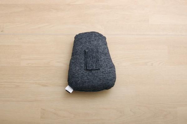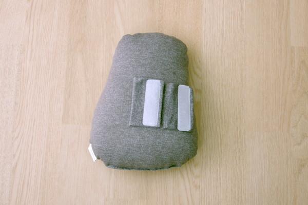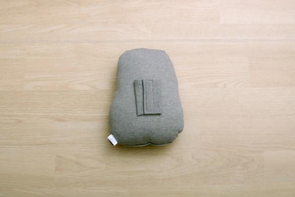クッションの後ろにはマジックテープ付きでシートベルトに取りつければ仮眠用の枕に変身します。また、腰当てやお部屋のインテリアとしてもご使用頂けます。側地には伸縮性のあるニット生地を使用、柔らかくサラッとした肌触りです。