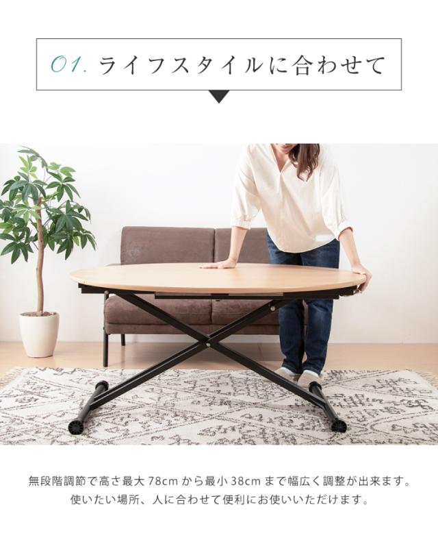 アイル 昇降テーブル 昇降式テーブル リフトテーブル リフティングテーブル 木製 リビングテーブル ダイニングテーブル(代引不可)【送料無料】