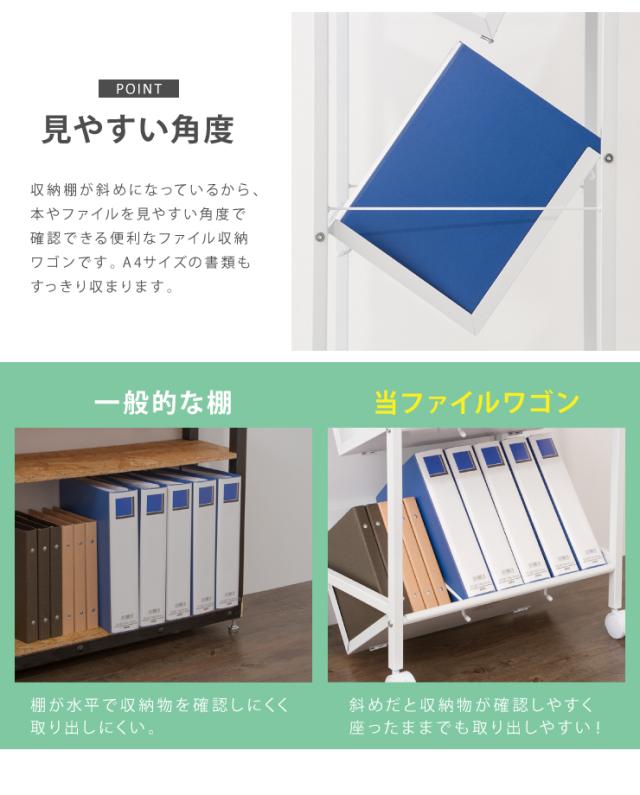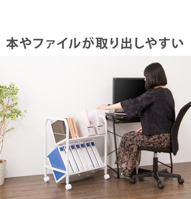 ファイルワゴン 2段 ホワイト ワゴン 収納 収納ケース リビング オフィス 本棚 ラック 棚 書棚 書類 ファイル(代引不可)【送料無料】