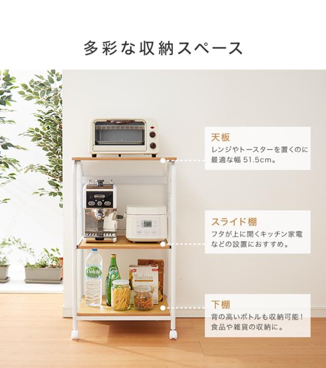 レンジワゴン 幅51.5cm 高さ89.5cm キャスター付き レンジ台 レンジボード レンジラック キッチンラック ラック キッチン収納(代引不可)
