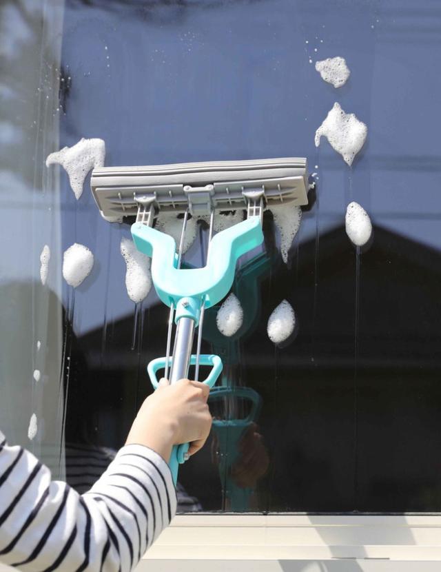 柄を短くして使うと窓ガラスの水洗い、水切りに最適。