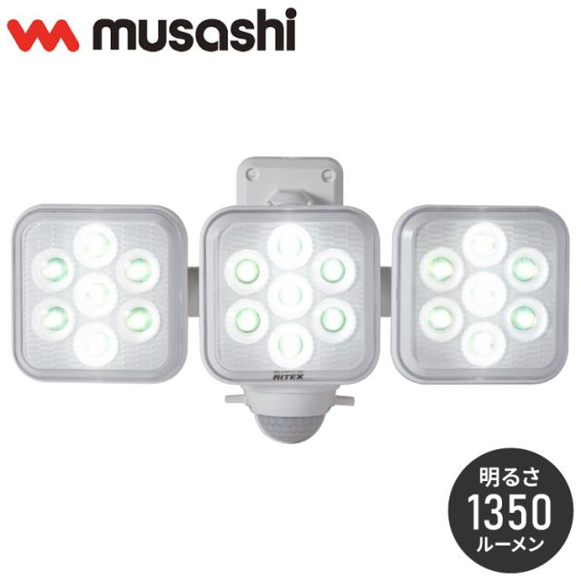 ムサシ 人感センサーライト 屋外 防犯ライト 乾電池式 5W×3灯 フリーアーム式LED乾電池センサーライト LED-320 自動点灯 人感センサー 強盗対策 防犯灯 防犯グッズ RITEX(代引不可)