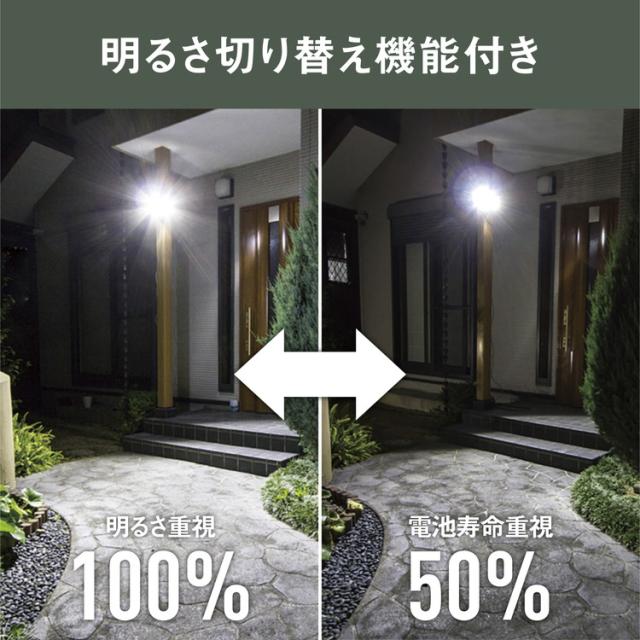 電池寿命=100%点灯時(約3か月/90日)、50%点灯時(約5.5か月/165日)※1日10回点灯(使用環境・電池の性能により異なります。)