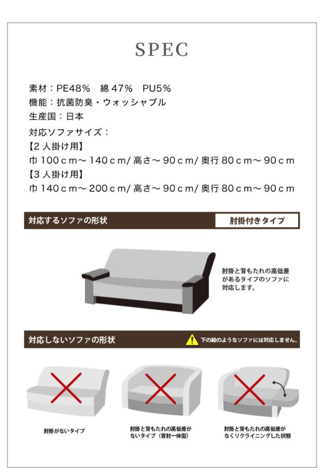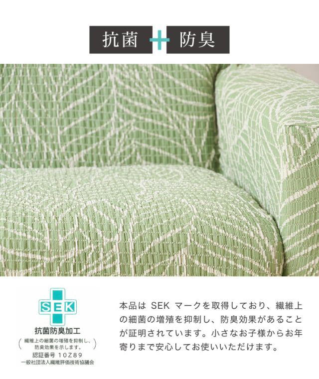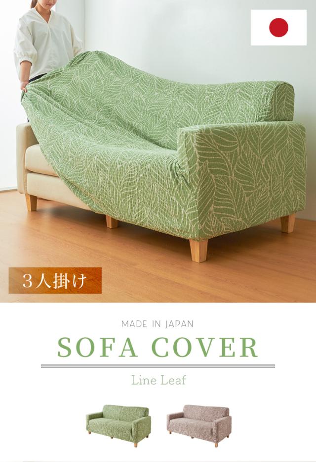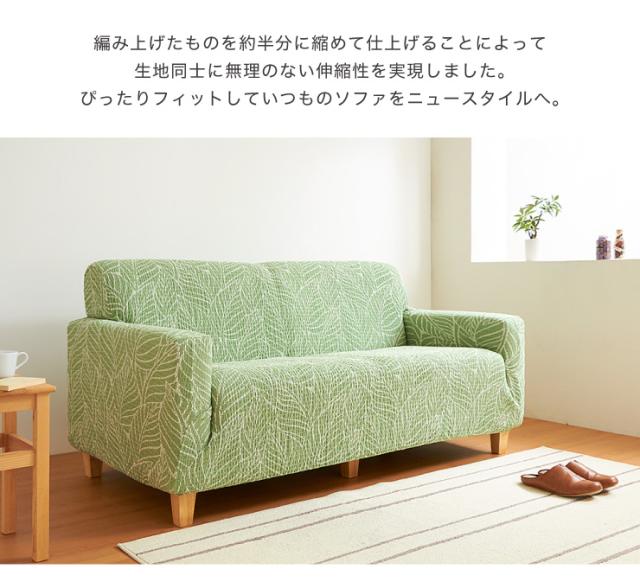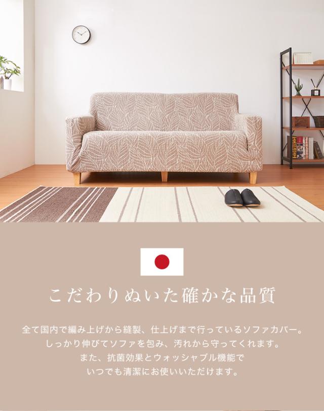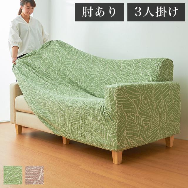 【日本製】 肘掛付 3人掛けソファ用 柄物 抗菌 防臭 リーフ柄 北欧 洗える ウォッシャブル ストレッチニット(代引不可)【送料無料】
