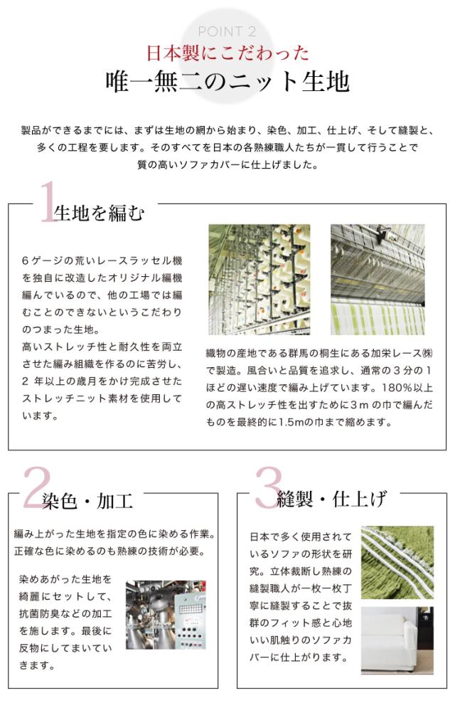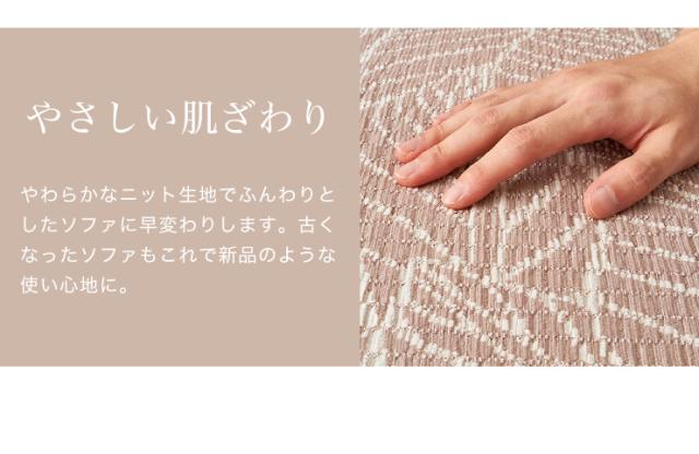 高い伸縮性のあるストレッチニットでソファにぴったりとフィット、着脱も簡単にできます。