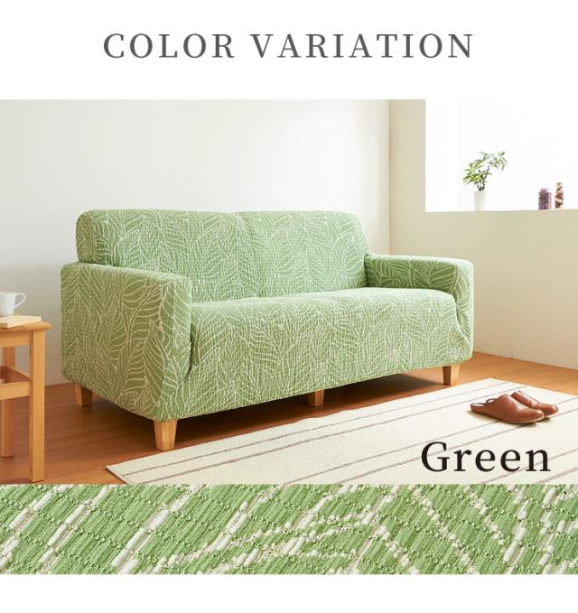 ラインでリーフ柄を表現し、北欧調の雰囲気を表現したフィット式のソファカバー。