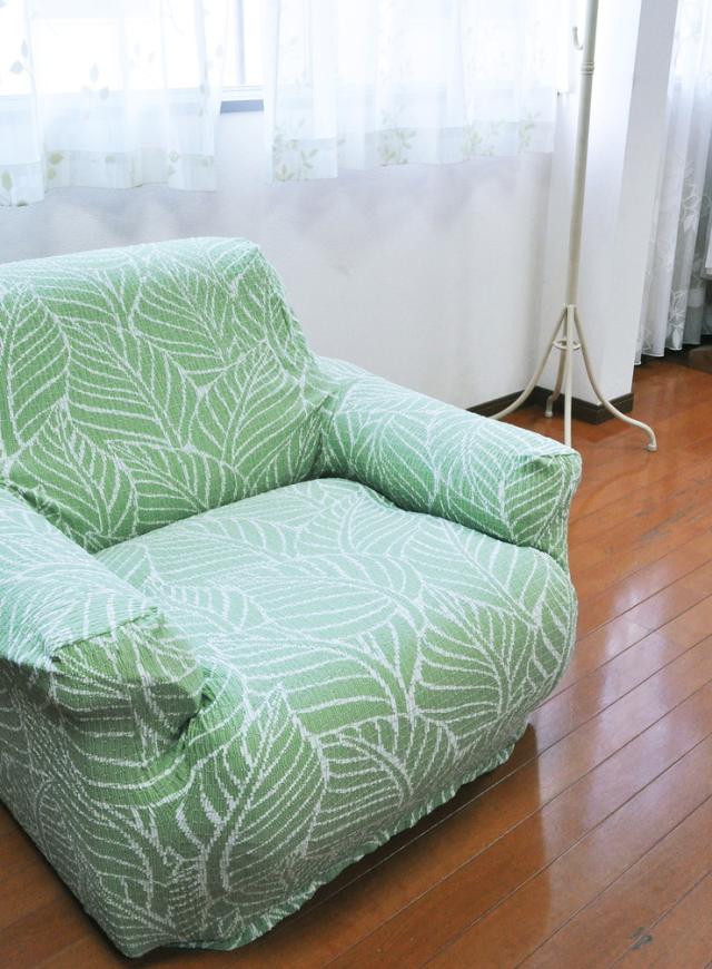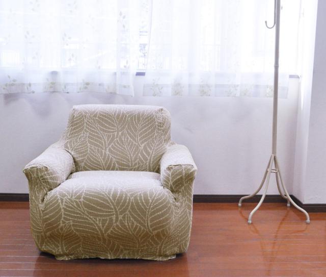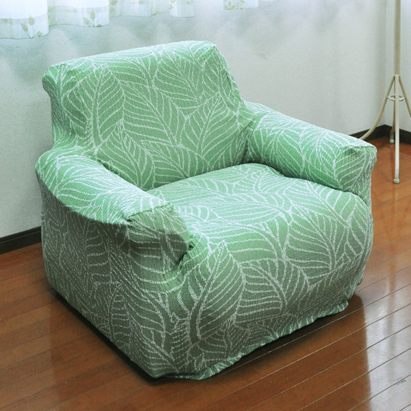 【日本製】 肘掛付 1人掛けソファ用 柄物 抗菌 防臭 リーフ柄 北欧 洗える ウォッシャブル ストレッチニット(代引不可)【送料無料】