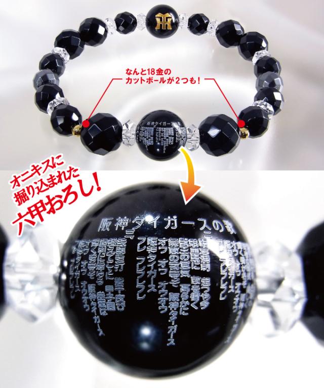 阪神六甲おろし ブレスレット C-6438 応援ブレスレット 公式 ロゴ パワーストーン オニキス ヘマタイト(代引不可)【送料無料】