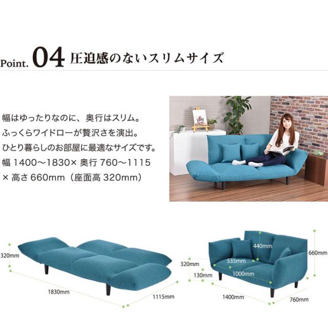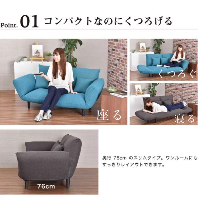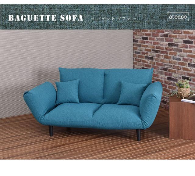 バゲット ソファ 日本製 カウチソファ 国産 クッション付き カウチ ローソファ ソファー 脚付き リクライニング 二人掛け(代引不可)【送