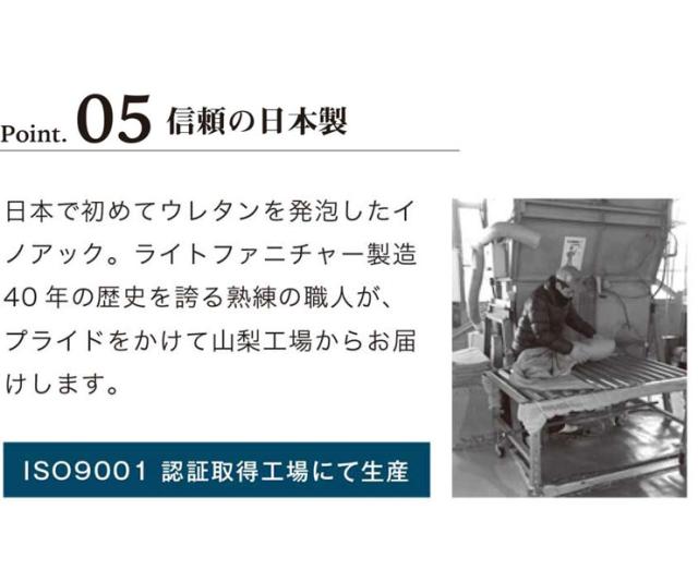 ※側地は中国製、中材はすべて日本製、最終生産は日本国内のイノアック工場です。