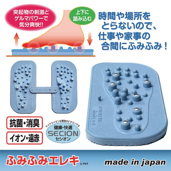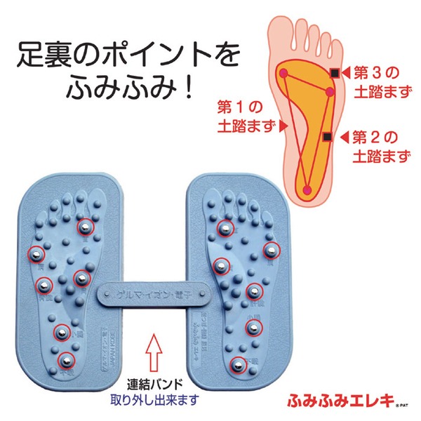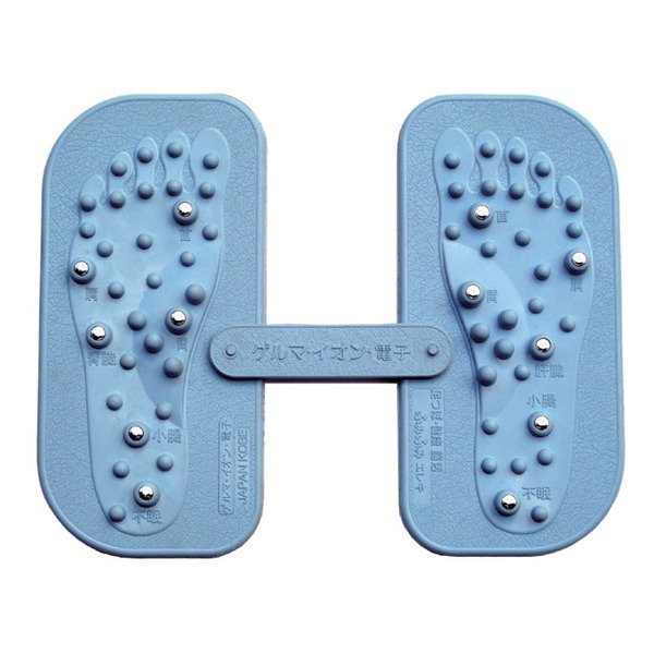 ゴム製品の産地として有名な神戸から発信された本製品は、疲れきった現代人の身体に独自の発想と技術でアプローチするものです。足の形に合わせた突起部の独自の配列が決め手。片足だけでも使用可のなセパレート設計。イスに座った状態でのご使用をオススメします。