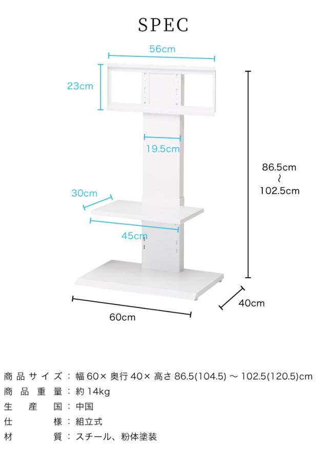 商品サイズ:幅60×奥行40×高さ86.5(104.5)〜102.5(120.5)cm