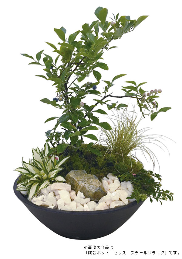 落ち着いた色合い、シンプルなフォルムで和モダンなガーデンにぴったりのプランター。