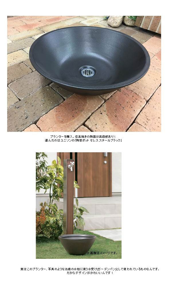 特徴:本来はウォーターポットとして使用する商品をプランターとしてコーディネートして使用しています。