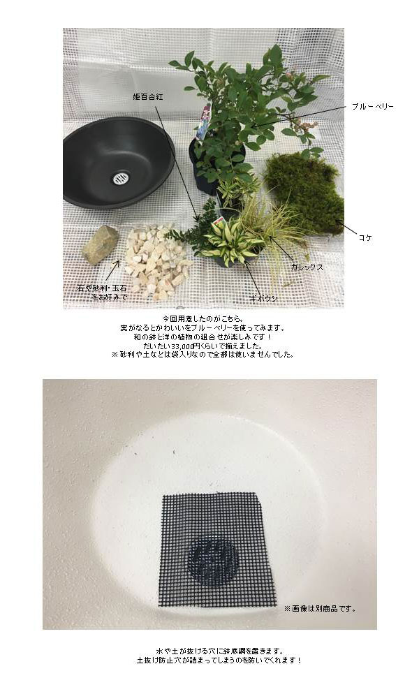 特徴:排水のための目皿が付いています。鉢底網を置いていただくことをオススメします。