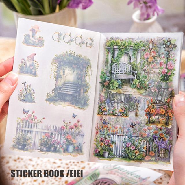 シールブック 型抜き 大容量 クリアシール ブック 海外 ステッカーブック 20頁 コラージュ 素材 シール PET ダイカット シールシート ホーム ハウス 一軒家 ガーデン 猫 窓柄 扉 ドア 花柄 建築 建物 小屋 コーヒー 珈琲 小鳥 植物 動物 生活雑貨 街道風景 樹