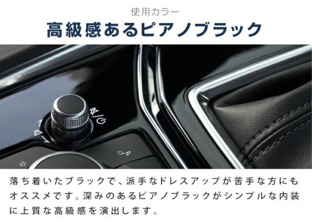 純正シフトパネルのピアノブラックとの相性も抜群で、素地部分をピアノブラックにカバーすることで、統一感と高級感を演出いただけます。