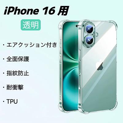iPhone 16 用 スマホケース ケース 一体型カメラレンズ部分保護 エアクッション エアバッグ 透明 クリア スマホカバー 保護カバー 指紋防止 耐衝撃 ワイヤレス充電