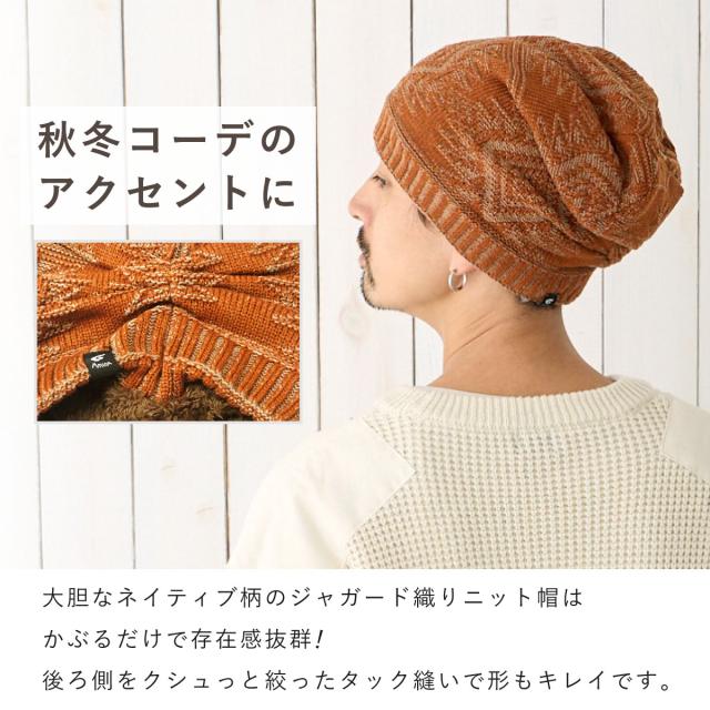 耳まであったか 柔らか裏ボア ニット帽 ネイティブ柄 ジャガード織り 深め ニットワッチ 模様編み ファー裏地つき knit-1717 アクリル 起毛 帽子 メンズ 軽くて暖かい レディース 秋冬 エスニック アウトドア 防寒 ワッチ 伸縮 二重生地 男女兼用 お洒落