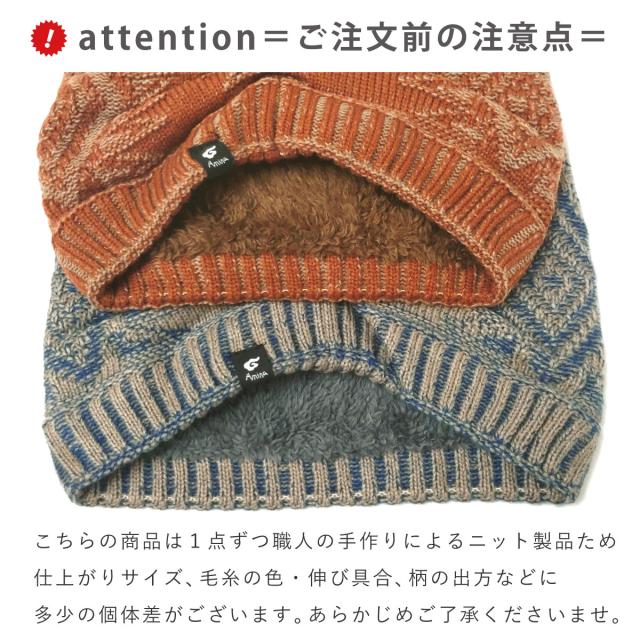 職人の手作りによるニット製品のため、仕上がりサイズ・毛糸の色や伸び具合・柄の出方などに個体差がございます。