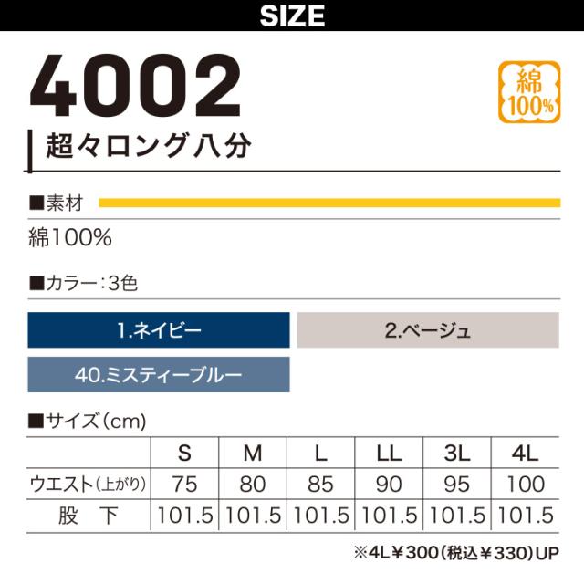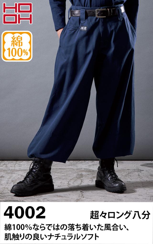 村上被服 HOOH 鳳凰 4002 秋冬 綿100% 超々ロング八分 ボンタン ズボン 鳶服 大工 工場 外作業 ワークユニフォーム 土木 工事 現場 S~4L メンズ 作業服 作業着