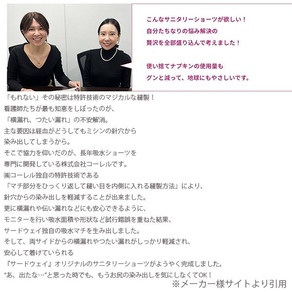 看護師さんと共同開発した安心吸水のサニタリーショーツです。