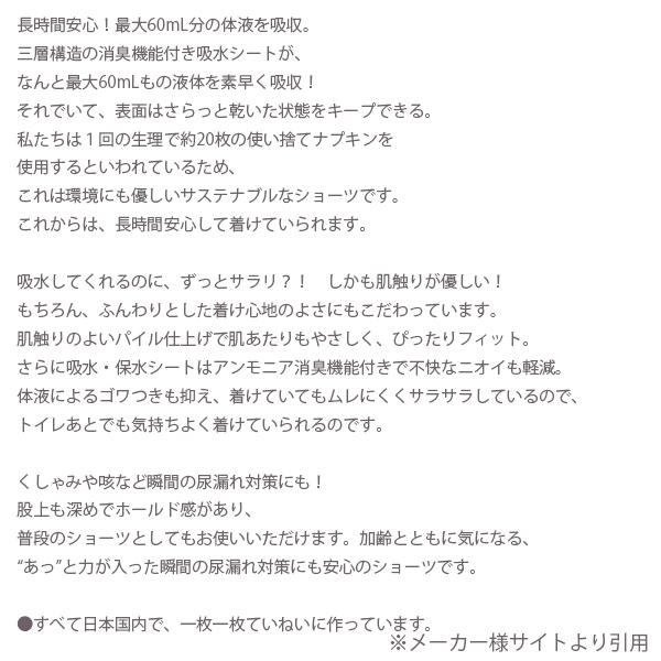 ショーツ パンツ 吸水 拡散 保水 防水 モレにくい ムレにくい 吸水量約60ml